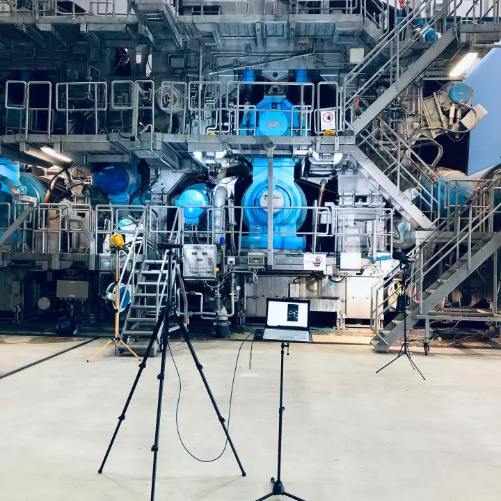Mit einem BERÜHRUNGSLOSEN HIGHSPEED-KAMERA SYSTEM messen und visualisieren wir problematische Maschinen und Anlagen und machen die Ursachen der Schwingungen dem menschlichen Auge sichtbar. Die berührungslosen Messungen finden im Prozess statt, so dass kein Anlagenstillstand erforderlich ist.